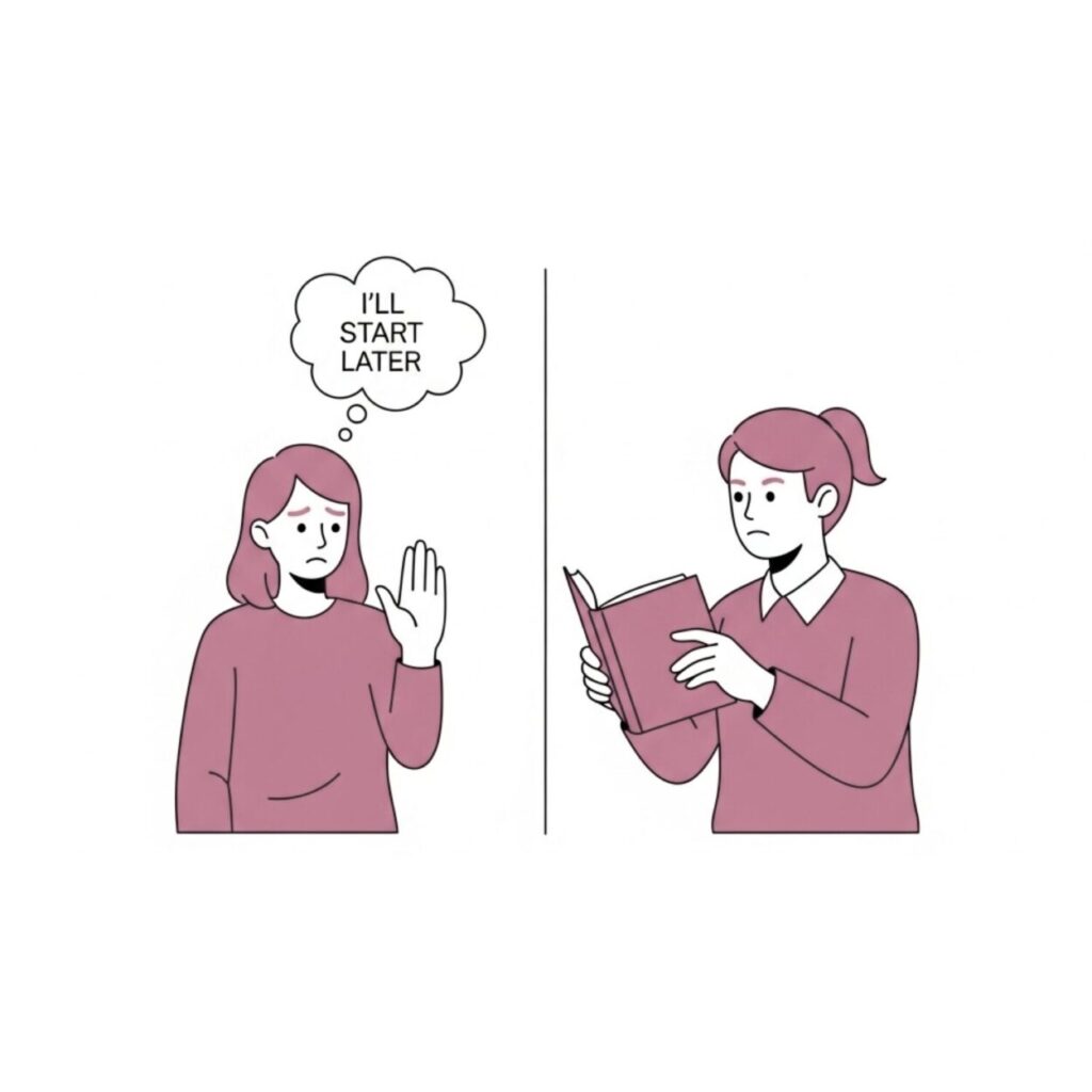 Many times we think, “I will start studying tomorrow” or “I will study a little later.” But this tomorrow never comes. If you really want to start studying, then do not wait for the “right time.” Just pick up the book immediately and start reading the first page. The beginning may be small, but this small beginning turns into a big study later on.